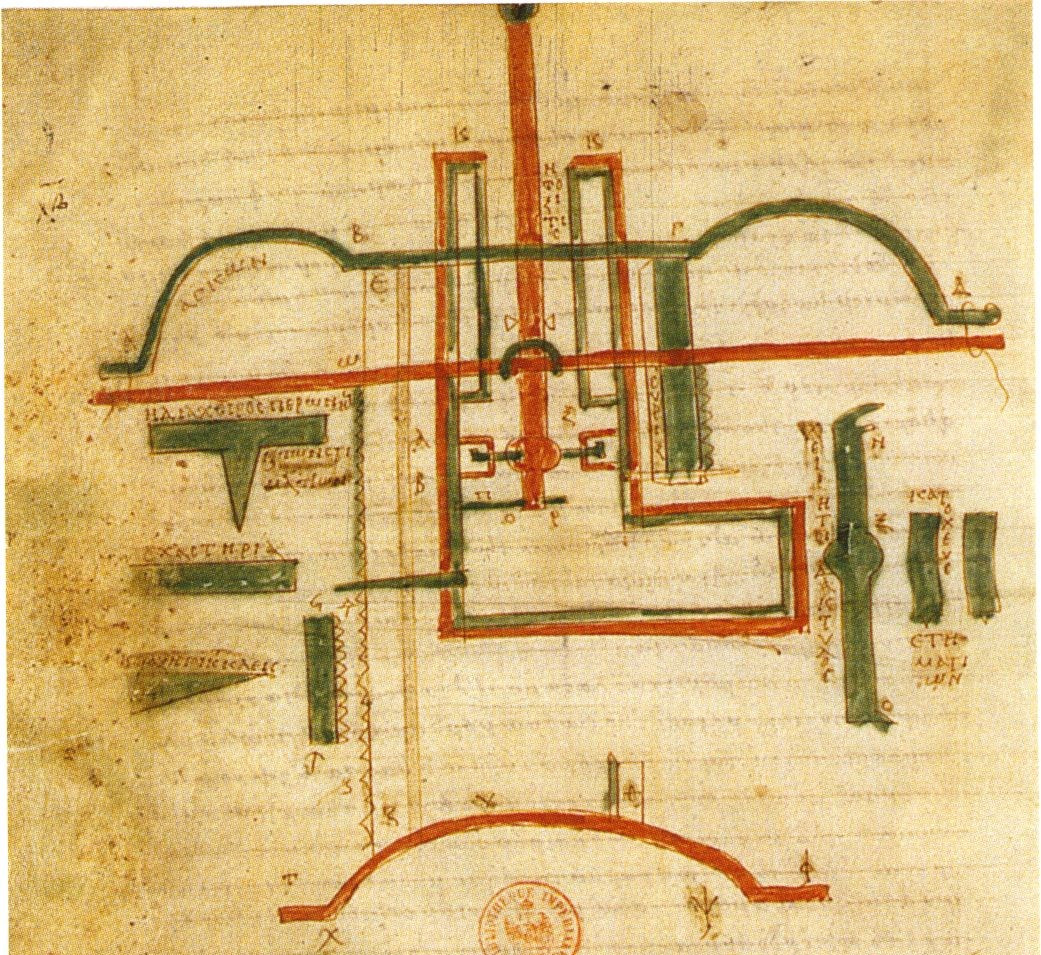 Direkt aus dem Lateinischen übersetzt bedeutet Armbrust ja “Bogenschleuder” – und dieses Prinzip kannten schon die Griechen; es gibt sogar eine antike Konstruktionszeichnung von Heron von Alexandria aus dem 3.Jh.v.Chr.
