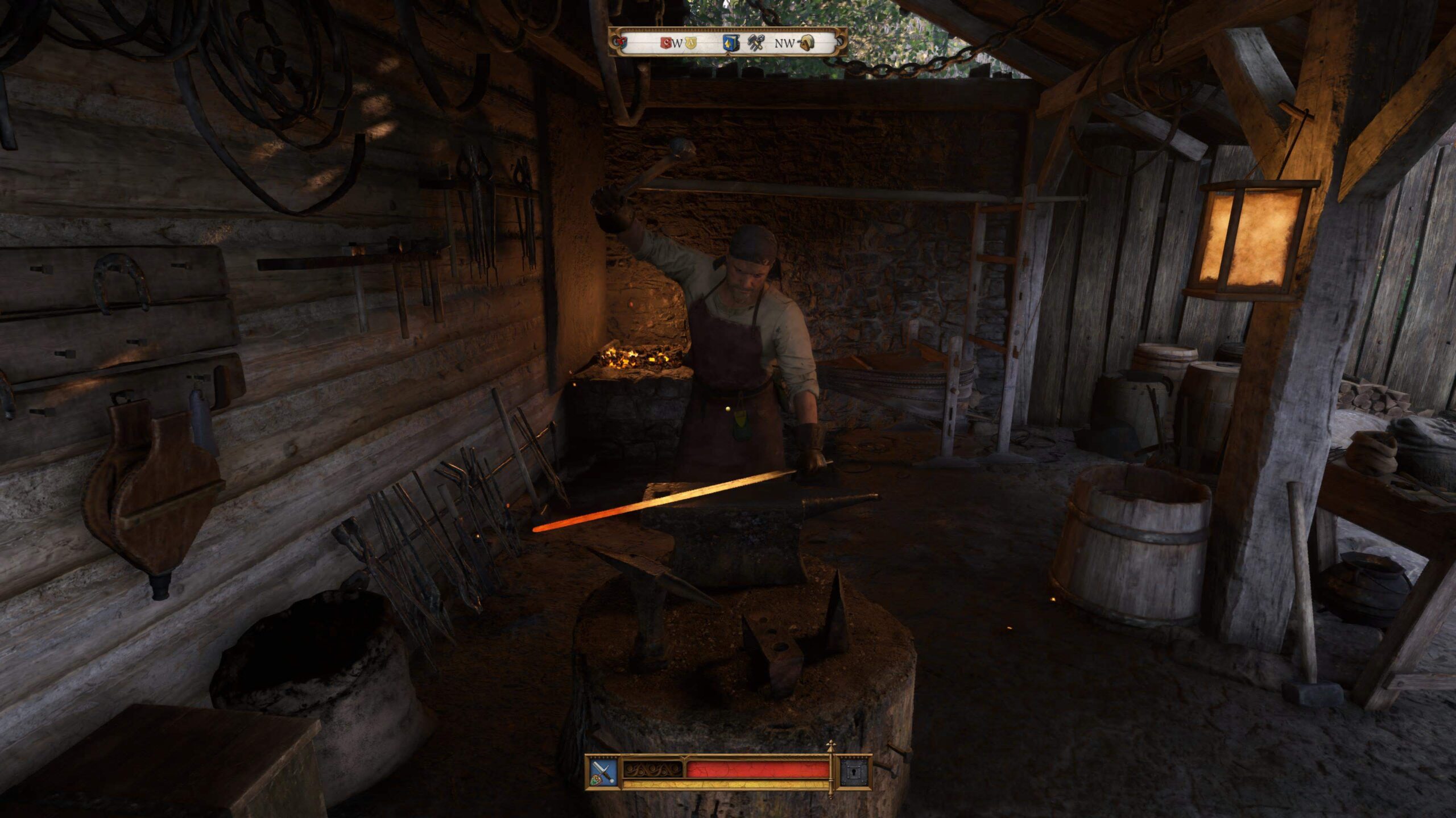 Aber Kingdom Come: Deliverance 2 ist nah dran am mitteleuropäischen Sense of Wonder. Und die Welt erschließt sich langsam über tägliche Routinen. Das Brauen von Tränken oder das Schmieden wird fast wie in einer Alltagssimulation inszeniert, indem man einzelne Handgriffe hintereinander ausführen sowie das richtige Timing für kochendes Wasser oder erhitztes Eisen einhalten muss. Man zerstößt Kräuter im Mörser oder haut mit dem Hammer im Idealfall so rhythmisch aufs Metall, dass Heinrich zu pfeifen anfängt und man vom Schmied gelobt wird. Man kann seine Arbeit auch versauen und Material verschwenden. Man muss das aber nicht tun und kann frei umher ziehen.