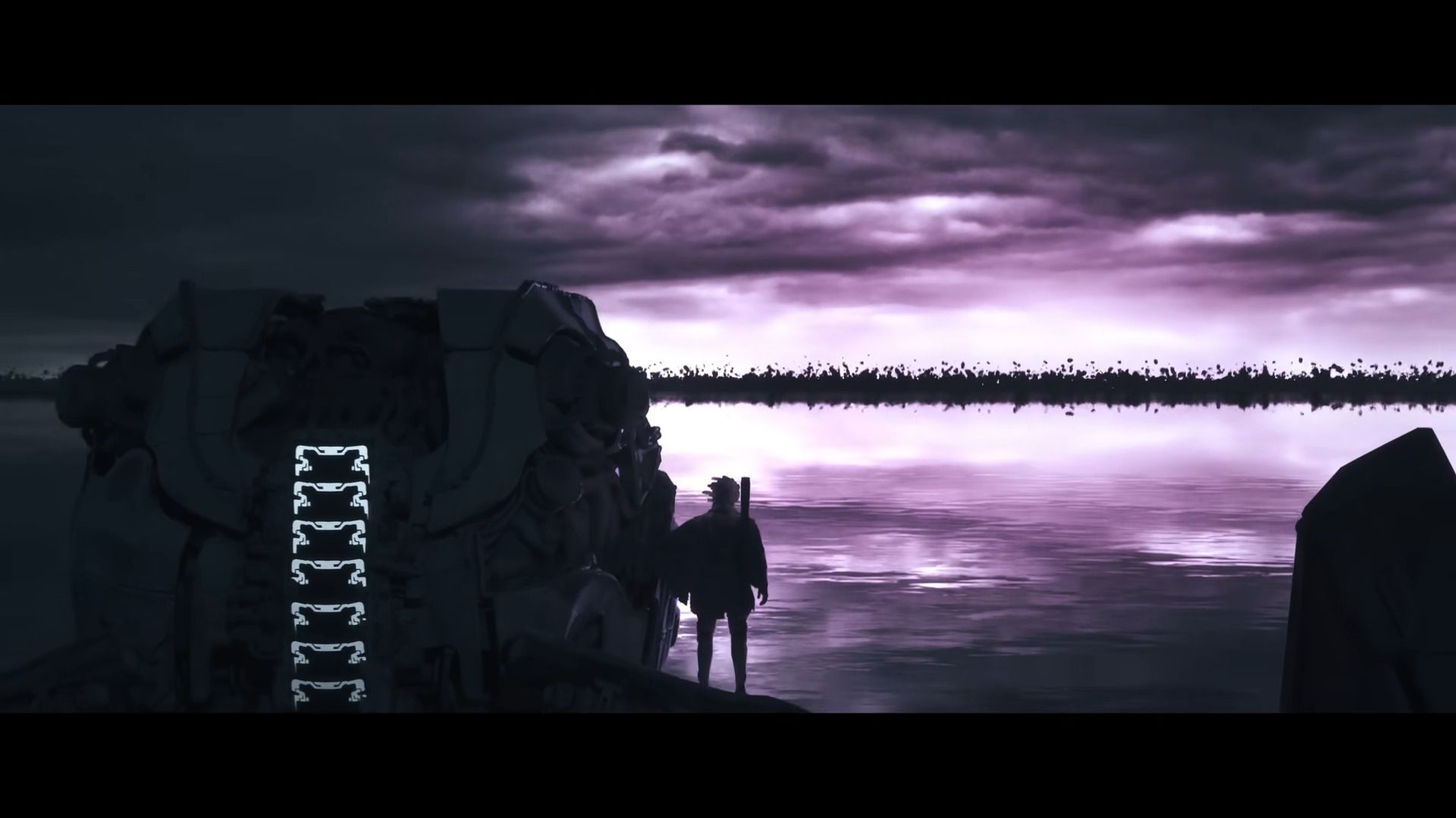 Hinzu kommt die spielerische Fortführung, denn es gibt erneut einen Begleiter und es dürfte sich eine Beziehung entwickeln. Statt eines Mädchens, eines Pferdes oder eines riesenhaften Wesens ist es diesmal ein robotischer Riese, dessen Kopf man betreten kann, um weiter zu reisen – und sich in Kämpfen zu beweisen. Die schwarz wabernde Bedrohung am lila Horizont erinnerte mich kurz an Ico und Neva, das Gesicht des Roboters entfernt an Greg aus Captain Future, also den Stil der 80er. Und ich kann mir vorstellen, dass es trotz Mechanleihen und Raketenantrieb in Richtung Science-Fantasy geht, dass also die Gegensätze zwischen fortschrittlicher Technik und archaischem Mythos durchaus spürbar und erzählerisch verbunden werden.